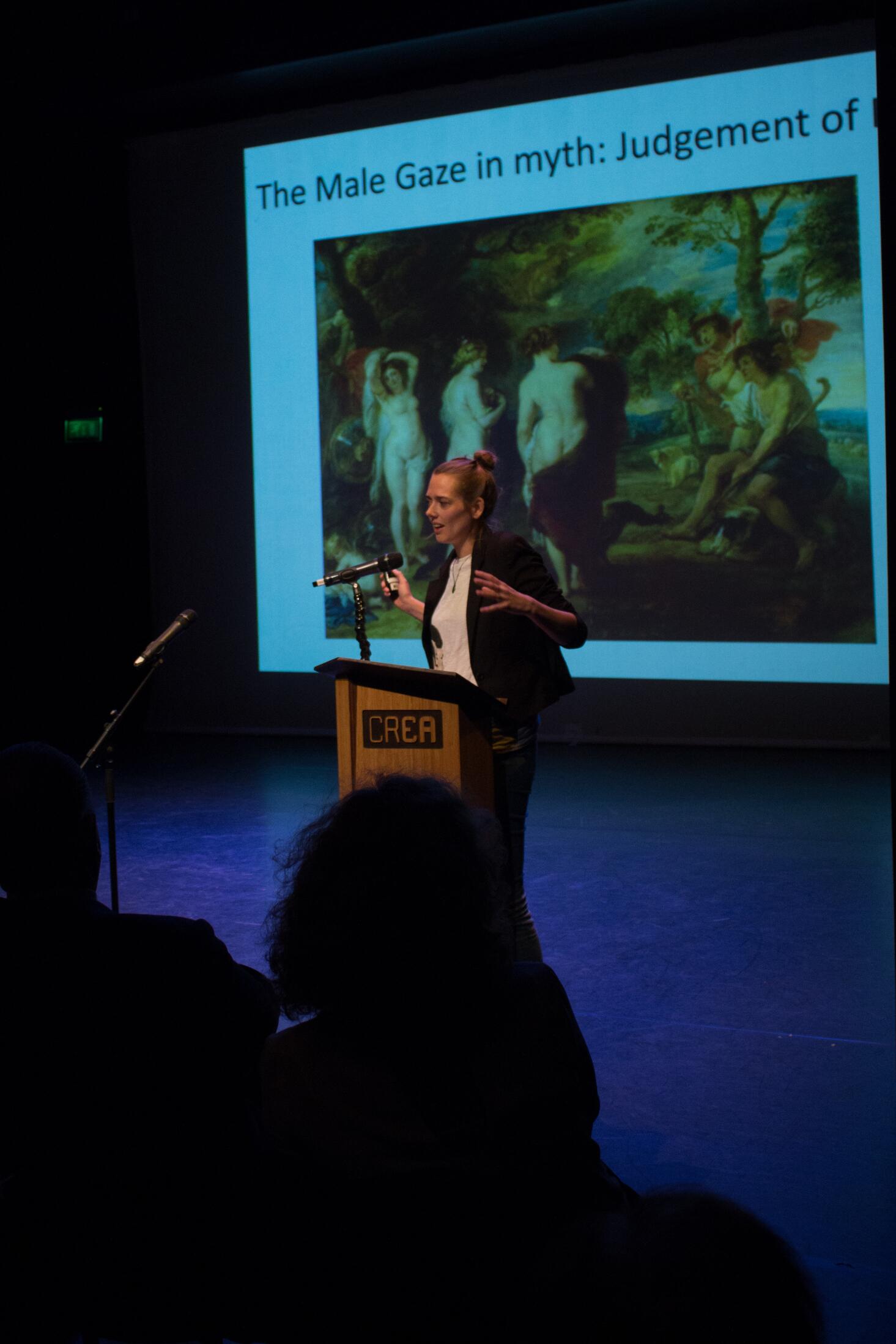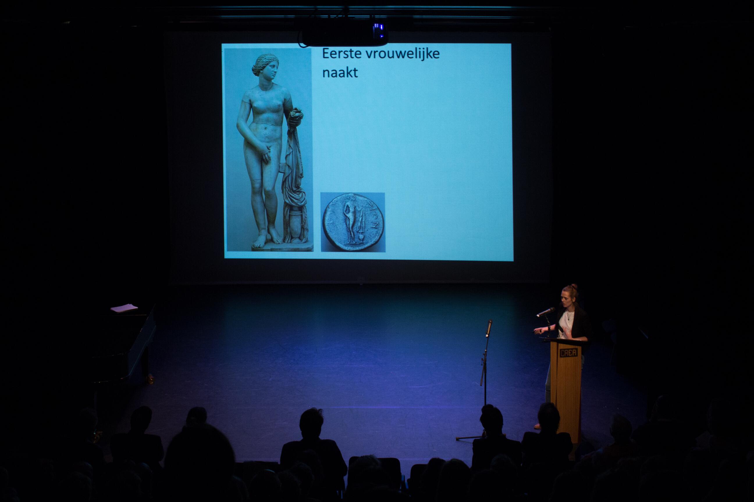 De dag opende met vier lezingen. Dr. Lucinda Dirven gaf een interpretatie van de mythe van Demeter: is dit verhaal te lezen als een feministisch manifest? Drs. Maria van de Poel besprak de beeldvorming van Danaë in vele verschillende kunstwerken, niet alleen uit de Oudheid, maar ook uit later tijden. De rol van de Amazonen in epen werd besproken door dr. Susanne Borowski. Tenslotte deed dr. Eva Mol een dringend beroep op de aanwezigen om gebruik te maken van een nieuwe beeldtaal voor vrouwen, een beroep dat niet alleen gestoeld is op weergaven van vrouwen in de Oudheid zelf, maar ook in de actualiteit.