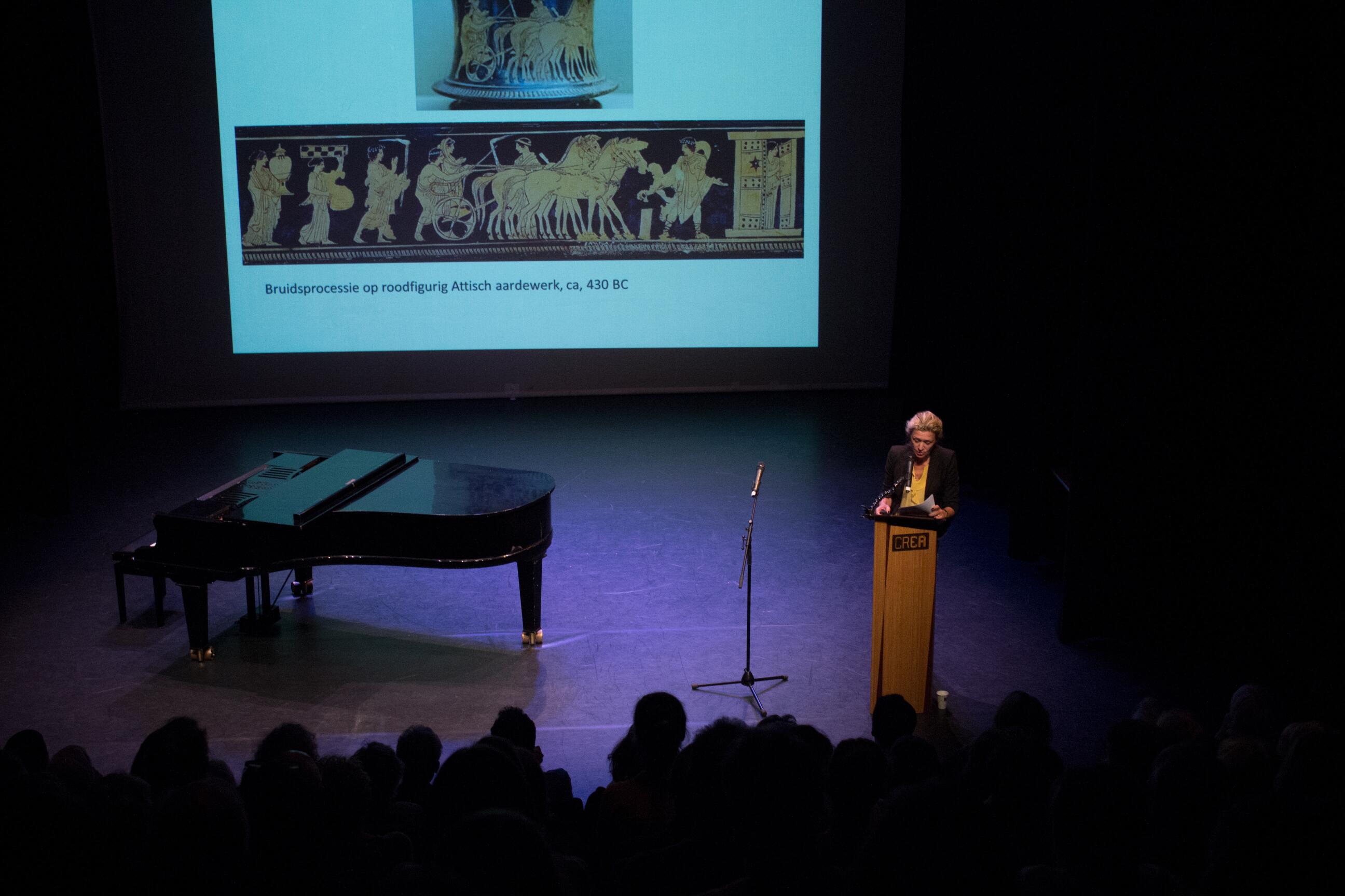 Tussen de lezingen door brachten Renske Pool (zang) en Bas van Bommel (piano) prachtige muziekstukken ten gehore. Alle muziekstukken vertolkten een stem van een vrouw uit de Oudheid (Da